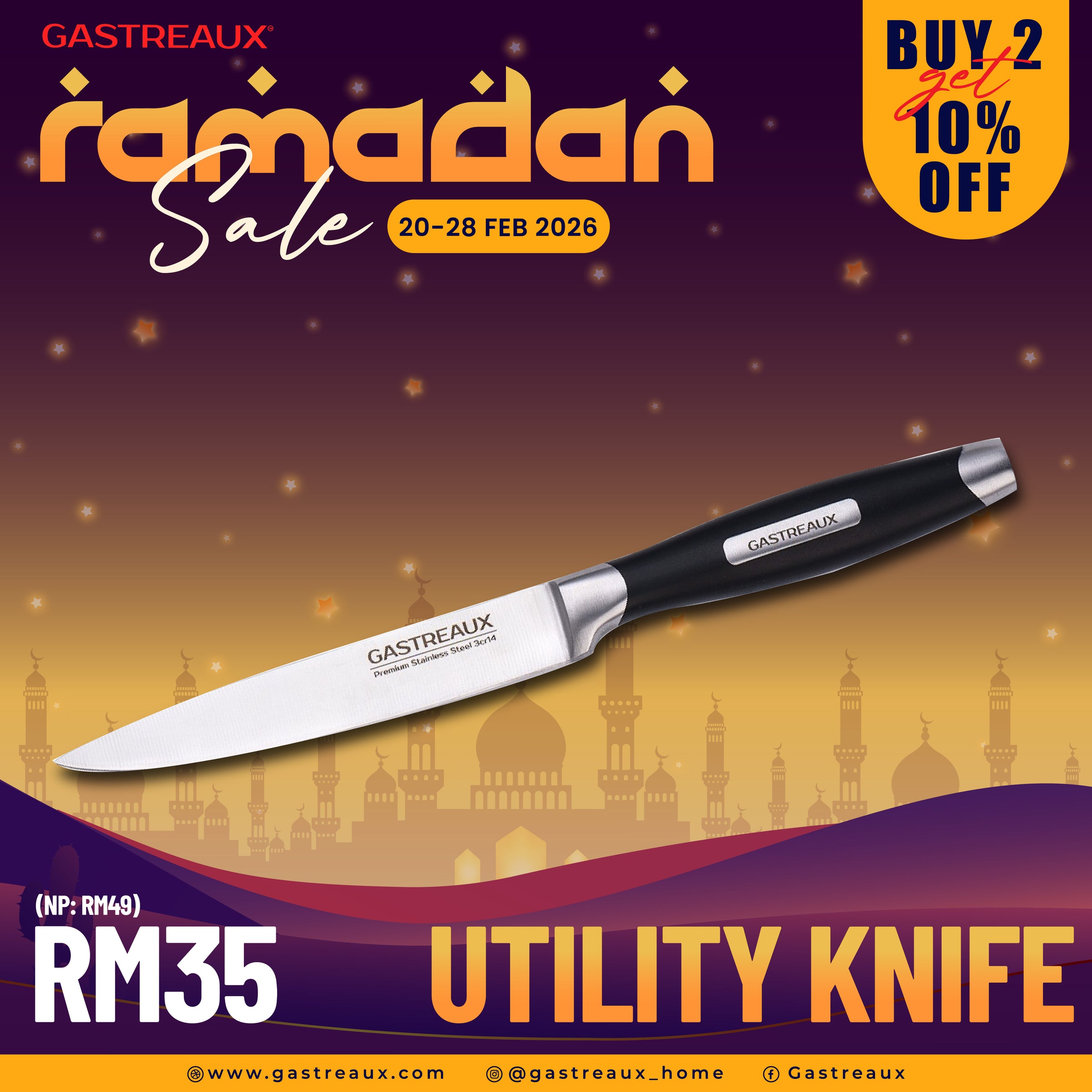 The Gastreaux Essential Knife is expertly crafted and tailored for households in Asia. Its stainless steel construction, in one seamless piece, guarantees durability and eliminates the risk of the blade separating from the handle. This versatile knife is perfect for slicing, dicing, cutting, and carving. Boasting precise and accurate fine-edged blades, coupled with soft-touch handles for comfort and control, it is a must-have for everyday use. After each use, simply hand wash the knife for a clean, professional cut. The sleek stainless steel and black handle design adds a touch of sophistication to any kitchen. With user safety in mind, the handle is coated with ABS for a secure grip. Additionally, it comes with a sleek revolving block for stylish and safe storage. The blade material is stainless steel 3cr14, while the handle is a combination of ABS and stainless steel 430. We guarantee that the Gastreaux Essential Knife is a practical and essential tool for all your cutting needs.